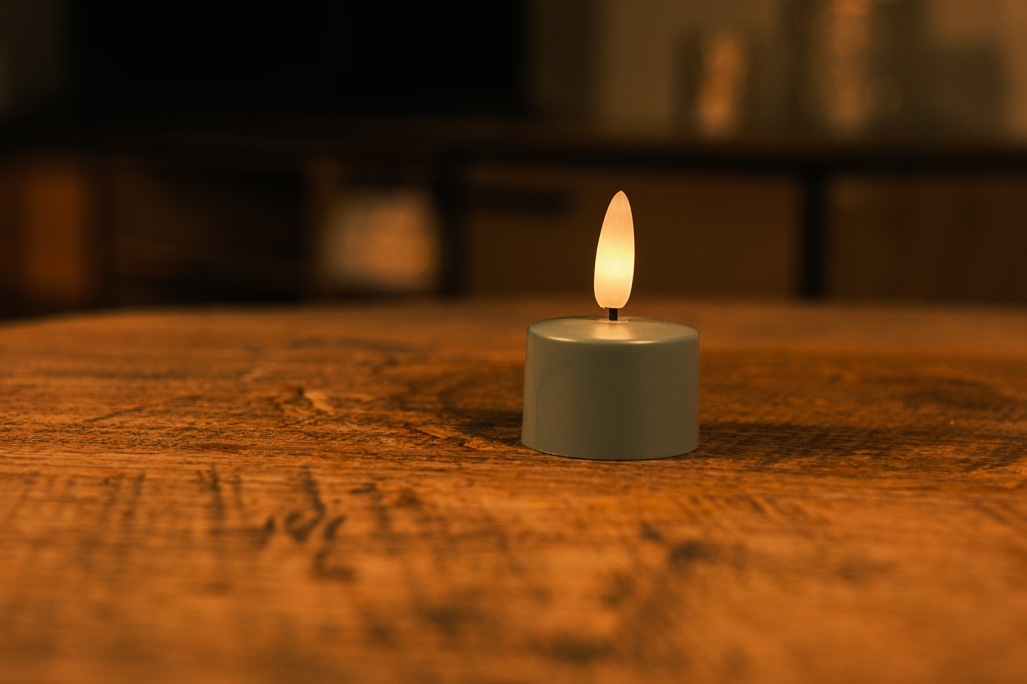 Den olivgröna finishen ger LED-värmeljusen ett naturligt uttryck. Färgen harmonierar fint med lugna inredningar och material som trä och sten, och kommer väl till sin rätt i vardagsrum, badrum och stämningsfulla hörn i hemmet.